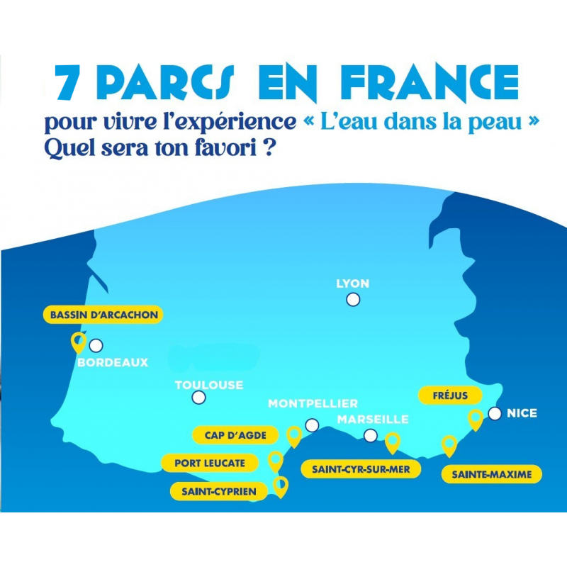 • Chaque Aqualand c’est entre 3 et 7 hectares de glisse, de plages et d’éclats de rire avec des piscines, des toboggans, un vrai tourbillon de fraîcheur…