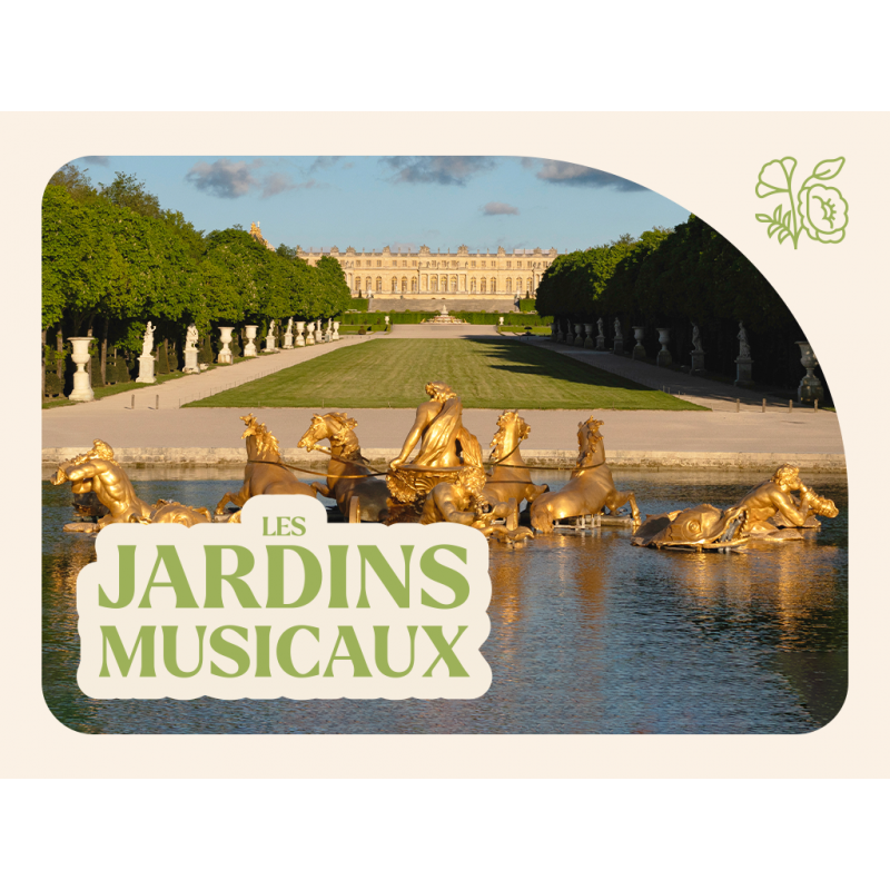 CHÂTEAU - VERSAILLES : LES JARDINS MUSICAUX Du 1er avril au 30 octobre 2026 De 09h00 à 19h00* Toute sortie est définitive. Au fil des saisons et au rythme de la musique baroque (Lully, Haendel, Charpentier, Campra, Cavalli…), déambulez au cœur des remarquables jardins à la Française du Château de Versailles ! Au détour d’un parterre fleuri, dans un bosquet exceptionnellement ouvert au public de 9h à 19h*, vous croiserez mille statues, des chefs-d'œuvre parfois cachés ou des topiaires (végétaux sculptés) taillées à la main par les jardiniers d’art du Château de Versailles. Comme autant de points d’orgue à votre promenade en famille ou entre amis, les fontaines du Bassin du Miroir et du Bassin de Neptune vous offriront, grâce aux techniques modernes, de magnifiques compositions de jets d’eau et de cascades aquatiques tout au long de la journée. Les Jardins Musicaux, l’incontournable visite des Jardins du Château de Versailles ! * Pour votre information, fin anticipée à 17h30 les mardi 27 octobre, mercredi 28 octobre, jeudi 29 octobre et vendredi 30 octobre.
