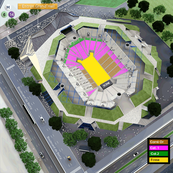 Placement Mixte Catégories OR, 1 & 2 : Places assises numérotées Fosse debout Early : Placement en fosse debout. Accès au site 30 minutes avant l'ouverture générale des portes. Au delà des 30 minutes, l'entrée anticipée ne sera plus garantie. - Attention! Du fait de la modularité de la salle la numérotation des gradins est inversée Le rang 01 est donc le plus éloigné de la scène l'orchestre et les balcons ont une numérotation normale - Tous les spectateurs doivent impérativement être en possession d'un billet, y compris les enfants quel que soit leur âge. - Réservation pour personne en situation d'handicap, et personne à mobilité réduite : 01.46.91.57.54