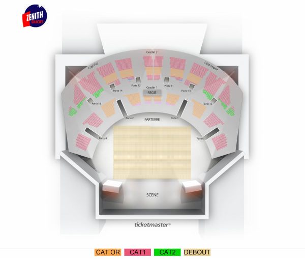 Carré or : places assises numérotées Catégorie 1 : places assises numérotées Catégorie 2 : places assises numérotées Debout : placement libre