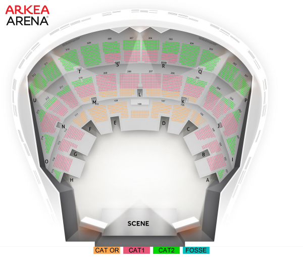 Placement mixte Fosse : Placement libre debout Carré or / Catégorie 1 / Catégorie 2 : Places assises numérotées