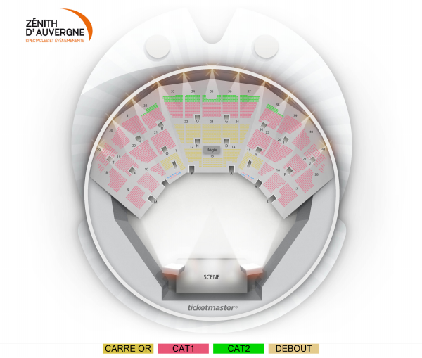Carre Or : Places assises numérotées Catégorie 1 : Places assises numérotées Catégorie 2 : Places assises numérotées Debout : Placement libre debout