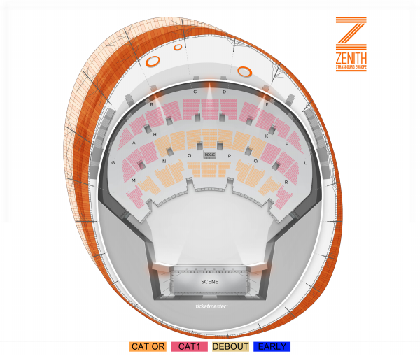 Catégorie Or : places assises numérotées Catégorie 1 : places assises numérotées Fosse : placement libre debout Early fosse debout : Accès prioritaire 30min avant l'ouverture des portes, priorité non garantie au-delà. Réservation pour les PMR PSH : reservation@label-ln.com