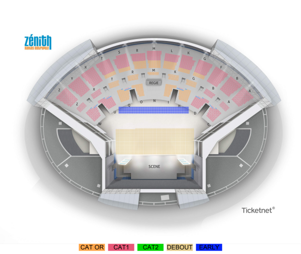 Catégorie Or : places assises numérotées Catégorie 1 : places assises numérotées Fosse : placement libre debout Early : Accès prioritaire 30min avant l'ouverture des portes, priorité non garantie au-delà.