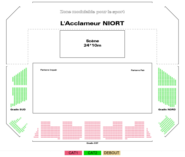 Placement mixte Catégorie 1 / Catégorie 2 : Places assises numérotées Debout : Placement libre debout