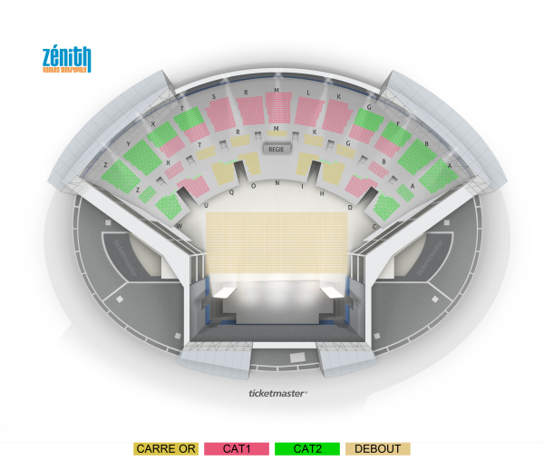 Catégorie OR, 1 et 2 : places assises numérotées Fosse : placement libre debout