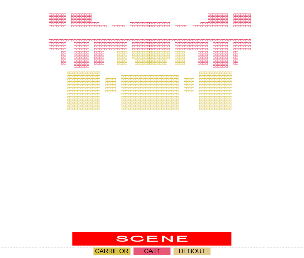 Carré Or : Places assises numérotées Catégorie 1 : Places assises numérotées DEBOUT : Placement libre debout