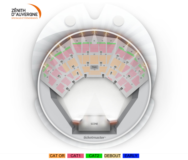 Catégorie Or : Places assises numérotées Catégorie 1 : Places assises numérotées Catégorie 2 : Places assises numérotées Debout : Placement libre debout Early Access Debout : Placement libre debout - Accès prioritaire 30 min avant l'ouverture des portes, priorité non garantie au delà.