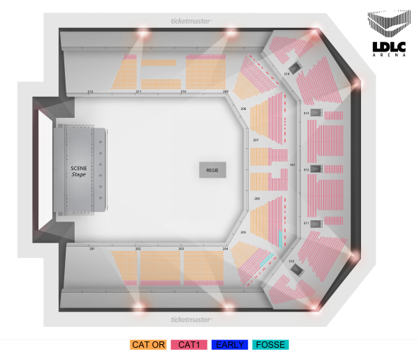 Catégorie Or : Places assises numérotées Catégorie 1 : Places assises numérotées Debout : Placement libre debout Early Access Debout : Placement libre debout - Accès prioritaire 30 min avant l'ouverture des portes, priorité non garantie au delà. Personne en mobilité Réduite (PMR) : Personne ayant besoin d'un accès réservé et aménagé permettant l'installation de son fauteuil roulant dans une zone dédiée, afin de garantir un espace adapté, sécurisé et confortable. Un justificatif sera demandé à l'entrée. Accompagnateur PMR : une place réservée à une personne qui accompagne un spectateur en situation de handicap en fauteuil roulant. Personne en situation de Handicap (PSH) : Personne présentant un handicap et ayant besoin d'un siège réservé et garantissant un accès adapté, sécurisé et confortable. Un justificatif sera demandé à l'entrée. Vous avez la possibilité d'être accompagné.e dans la limite d'un accompagnant.