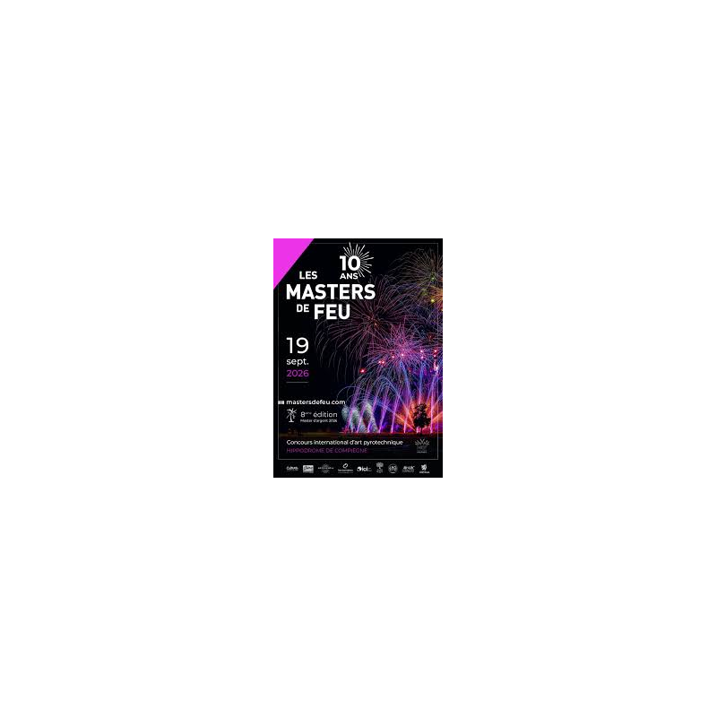 MASTERS & EVENTS FACTORY PRÉSENTE : LES MASTERS DE FEU Réservation PMR : contact@mastersdefeu.com Rendez-vous le samedi 19 septembre 2026 à l'hippodrome de Compiègne pour une édition exceptionnelle avec trois nouveaux pays en compétition qui tenteront de remportant le Master d'argent et ainsi se qualifier pour la grande finale de 2029 ! Horaires Ouverture des portes à 17h00, début du spectacle à 20h30, fin du spectacle à 23h30. Consignes de sécurité L’acheteur est invité à se renseigner sur les dispositions de sécurité mis en place pour l’événement sur le site www.mastersdefeu.com/faq. Sont totalement interdits sur le site de l'hippodrome :