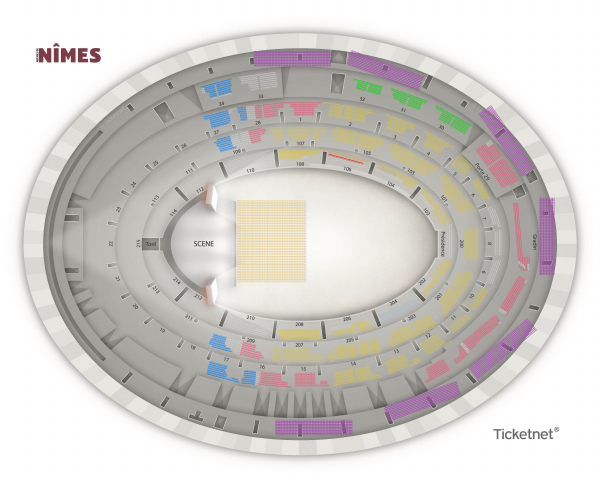 Placement mixte: Catégorie 1 : Places assises numérotées Catégorie 2 : Places assises numérotées Catégorie 4 : Places assises numérotées Debout : Placement libre debout Générales : Placement libre assis