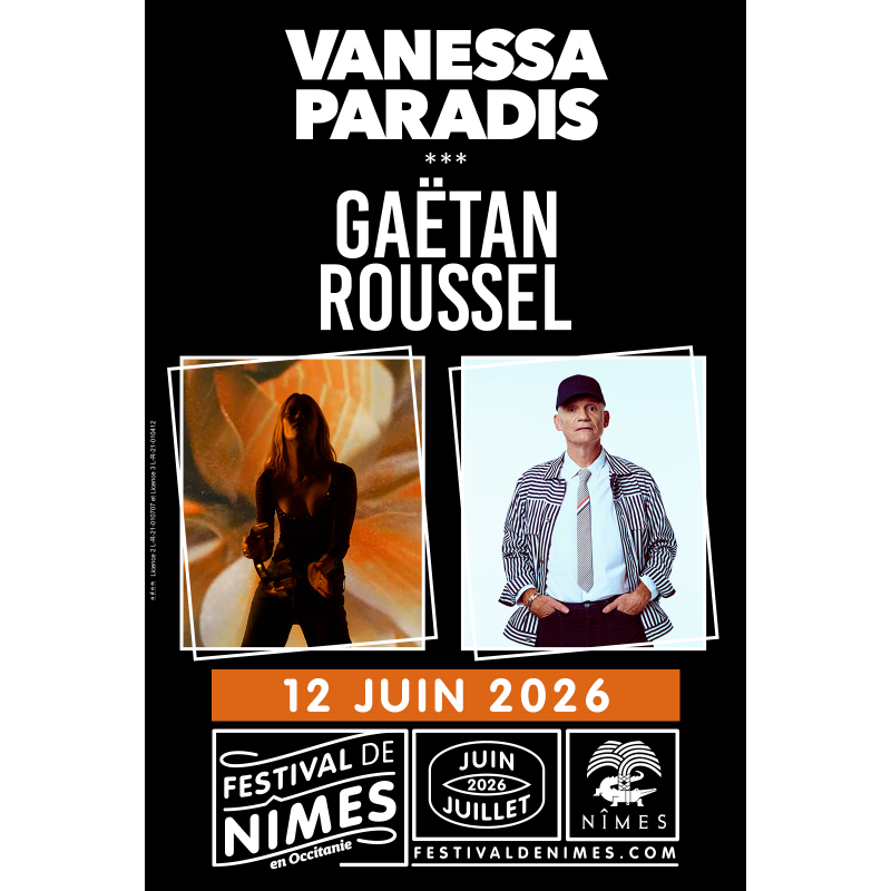 ADAM CONCERTS PRESENTE : VANESSA PARADIS - GAETAN ROUSSEL VANESSA PARADIS & GAETAN ROUSSEL seront au Festival de NÎMES le Vendredi 12 Juin 2026! Icône de la chanson française, Vanessa Paradis revient sur scène avec un nouvel album qui marque son grand retour musical aux influences pop & soul qui lui sont chères. Prolifique porteur et passeur de projets, Gaëtan Roussel ne cesse d’inventer son destin d’artiste en mouvement. Après des retrouvailles triomphales avec Louise Attaque, il s’échappe de nouveau en solo, avec un sixième album studio “Marjolaine“ paru le 14 novembre 2025. Il sera pour l’occasion en tournée en France à partir du printemps 2026.