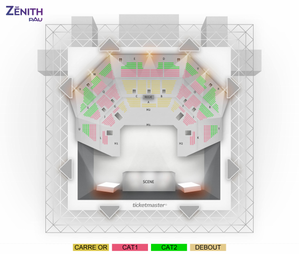 Carré or / Catégorie 1 / Catégorie 2 : Places assises numérotées Placement libre debout