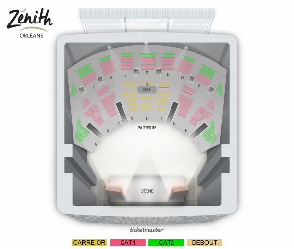 Carré or : places assises numérotées Catégorie 1 : places assises numérotées Catégorie 2 : places assises numérotées Debout : placement libre debout