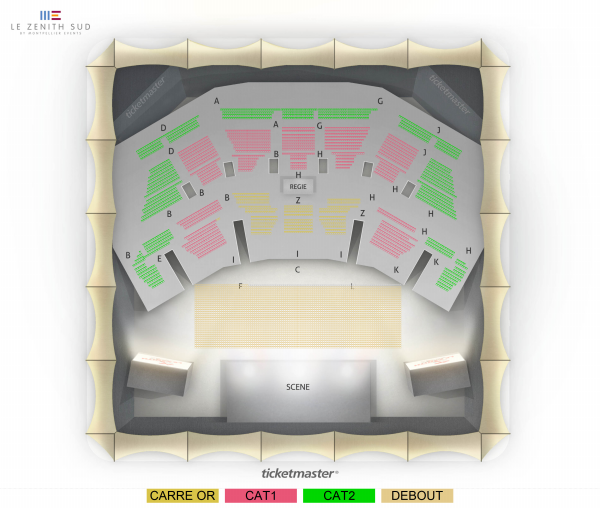 Carré or, Catégorie 1, Catégorie 2 : Places assises numérotées Debout : Placement libre debout
