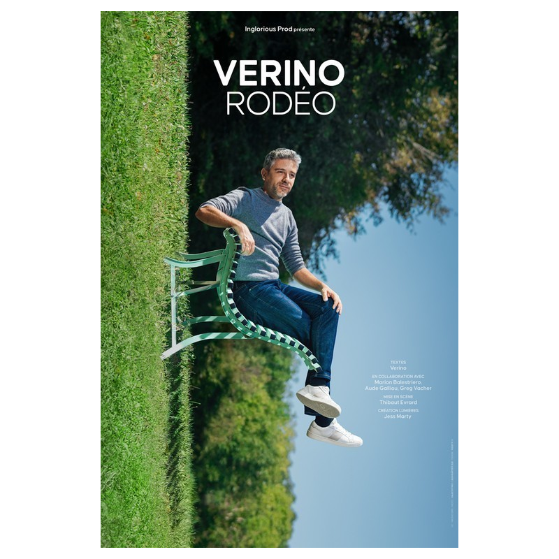 RPO PRÉSENTE : VERINO Verino explore une nouvelle fois la complexité des tensions qui nous habitent. Ancré dans le sol mais les pieds dans le vide, il navigue avec agilité pour tenter de trouver un peu de stabilité au milieu des turbulences de notre époque. Et c’est pas facile. Oh que non… On ne fait pas de balade sur un cheval fougueux. On fait du rodéo. Le saviez-vous? Ayant affiché complet dans les plus belles salles de France avec “FOCUS”, l’humoriste aux 150 millions de vues sur Youtube vous présente son nouveau spectacle, “RODÉO”. Et en bonus, tous les vendredis, le tournage en public de ses vidéo “Dis Donc Internet”. Textes : Verino En collaboration avec : Marion Balestriero, Aude Galliou, Greg Vacher Mise en scène : Thibaut Evrard