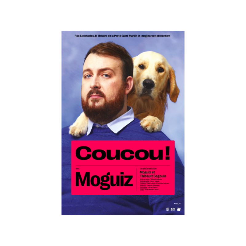 OLAC PRÉSENTE : MOGUIZ Coucou ! avec Moguiz En quelques mois, Moguiz est devenu un véritable phénomène sur les réseaux sociaux grâce à sa galerie de personnages qu’il improvise et interprète avec une acuité aiguisée. Son sens inné de portraitiste d’hommes et de femmes de tous horizons (prof, secrétaire, comptable, parents, enfants...) lui a permis de créer un rendez-vous attendu chaque jour sur ses différents réseaux, par un public très diversifié. Depuis le 5 février Moguiz raconte une partie de son parcours et fait vivre ses personnages les plus emblématiques sur scène au Petit St-Martin à Paris. Il sera en tournée à partir d’octobre 2025. Un spectacle écrit par Moguiz et Thibault Segouin Mise en scène : Thibault Segouin Scénographie : Pierre Claude Lumières : Gaël Cimma et Gauthier Segouin Musique : Francois Villevieille Perruques : Florian Tronco Vidéo : Anne-Héloïse Dautel