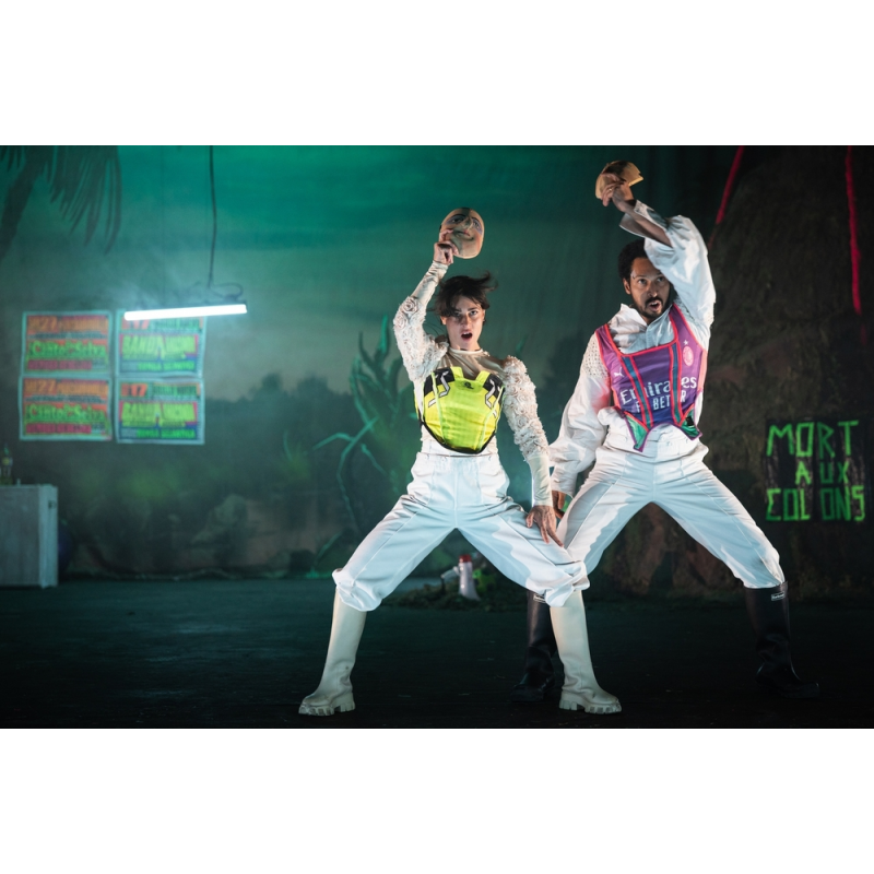 LA MERISE PRÉSENTE : ON NE FAIT PAS DE PACTE AVEC LES BETES Spectacle de cirque contemporain total, On ne fait pas de pacte avec les bêtes nous emmène dans la forêt amazonienne teintée de couleurs et des sons pop d’Amérique du sud. Cette grande forme fictionnelle déploie une aventure chorégraphique, acrobatique et théâtrale dans lesquelles le loufoque et le tragique façonnent une dramaturgie sous-tendues par les luttes anti colonialistes et écologiques en cours aujourd’hui en Amazonie. Ils mettent en scène la folie de l’homme occidental, déterminé à piétiner le vivant au bénéfice de son projet de conquête mégalomaniaque.