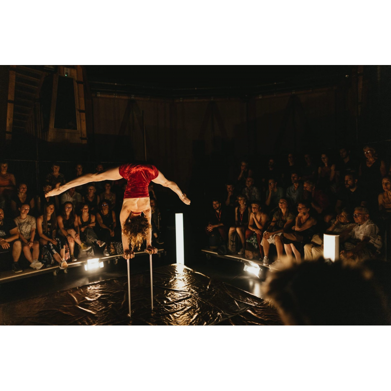 DES NUITS POUR VOIR LE JOUR Compagnie Allégorie – France Cirque, théâtre Durée : 1h30 Dès 10 ans Dans son spectacle en « auto-corps-trait », comme elle aime à le dire, Katell Le Brenn nous partage son parcours d’équilibriste et de contorsionniste. Son récit réjouissant, mêlant cirque et théâtre, explore l’impact de la pratique physique de haut niveau sur son quotidien. À travers quatre tableaux lumineux, mis en scène audacieusement par David Coll Povedano, l’artiste nous transporte dans quatre moments clés de sa vie d’acrobate. Sur du beatboxing ou bien des mélodies de Schubert, elle enchaîne les figures avec grâce. Et par la force de ses