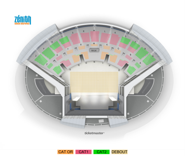 Catégorie OR : places assises numérotées Catégorie 1 : places assises numérotées Catégorie 2 : places assises numérotées Fosse : placement libre debout