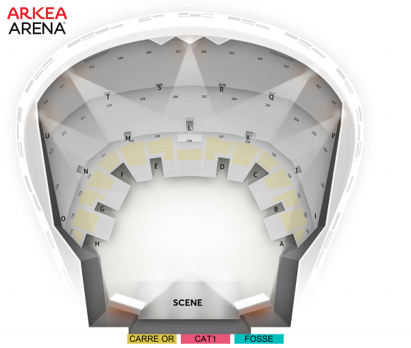 Carré or : places assises numérotées Catégorie 1 : placement libre assis Fosse : placement libre debout