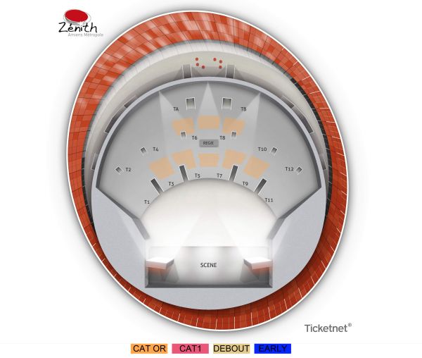 Catégorie Or : places assises numérotées Catégorie 1 : placement libre assis Fosse : placement libre debout Early : placement libre debout en fosse - accès au site 30 min avant l'ouverture des portes, priorité non garantie au-delà.