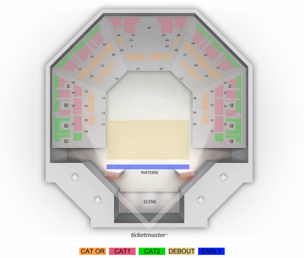 Placement mixte : libre debout et assis numéroté Carré or : places assises numérotées Catégorie 1 : places assises numérotées Catégorie 2 : places assises numérotées Fosse : placement libre debout Early Entrance : placement libre debout. Ouverture des portes à 18h30, accès 30 minutes avant l’ouverture des portes, priorité non garantie au-delà Contact PMR / PSH : infos.psh@label-ln.com