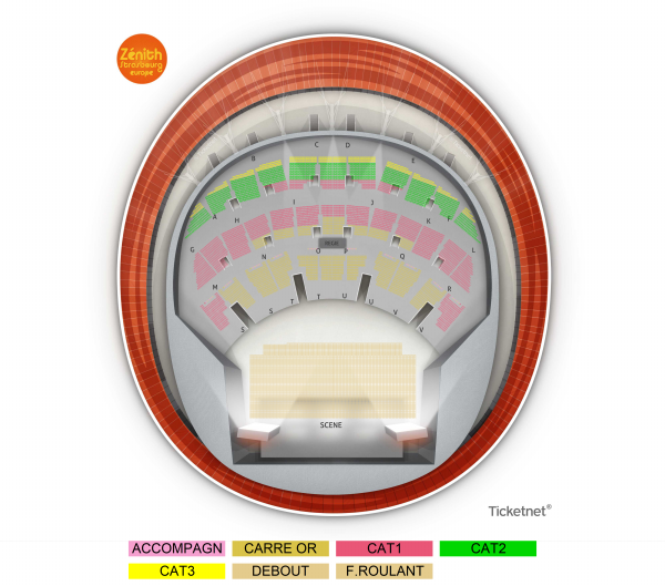Placement mixte : libre debout et assis numéroté Carré or : places assises numérotées Catégorie 1 : places assises numérotées Catégorie 2 : places assises numérotées Catégorie 3 : places assises numérotées Fosse : placement libre debout