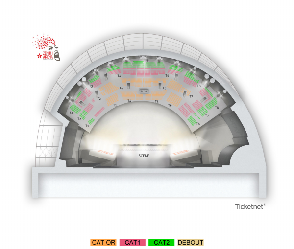Catégorie or : places assises numérotées Catégorie 1 : places assises numérotées Catégorie 2 : places assises numérotées Debout : placement libre debout