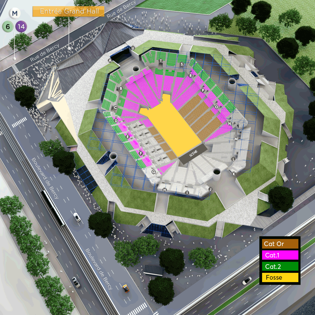 Placement mixte : - Catégories Or, 1 et 2 : votre placement est assis numéroté, - Debout : votre placement est libre. - Attention! Du fait de la modularité de la salle la numérotation des gradins est inversée Le rang 01 est donc le plus éloigné de la scène l'orchestre et les balcons ont une numérotation normale - Tous les spectateurs doivent impérativement être en possession d'un billet, y compris les enfants quel que soit leur âge. - La réservation des places PMR / PSH et accompagnateurs est disponible par téléphone au 01.46.91.57.54.