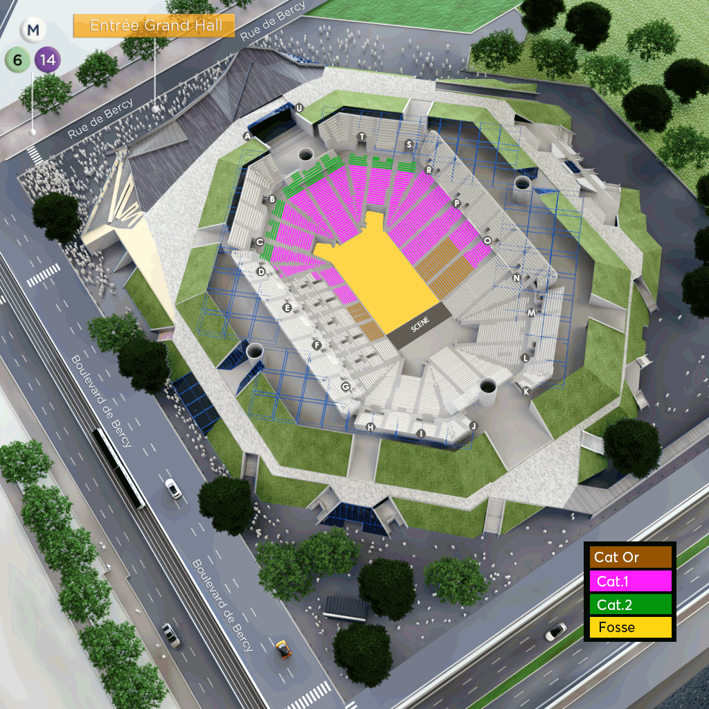 Placement mixte : - Carré Or, Catégories 1 et 2 : votre placement est assis numéroté, - Fosse : votre placement est debout. - Attention! Du fait de la modularité de la salle la numérotation des gradins est inversée Le rang 01 est donc le plus éloigné de la scène l'orchestre et les balcons ont une numérotation normale - Tous les spectateurs doivent impérativement être en possession d'un billet, y compris les enfants quel que soit leur âge. - La réservation des places PMR / PSH et accompagnateurs est disponible par téléphone au 01.46.91.57.54.