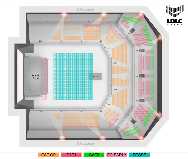 Catégorie Or : Places assises numérotées. Catégorie 1 : Places assises numérotées. Catégorie 2 : Places assises numérotées. Fosse : Placement libre debout. Early Entrance : Placement libre debout. Accès 30 minutes avant l’ouverture des portes, priorité non garantie au-delà