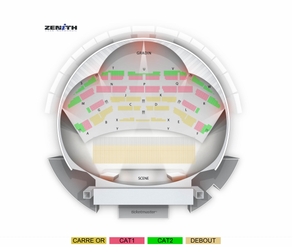 Carré Or : Places assises numérotées Catégorie 1 et 2 : Places assises numérotées Debout : Placement libre debout