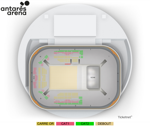 Catégorie 1, 2 et Or : places assises numérotées Fosse : placement libre debout