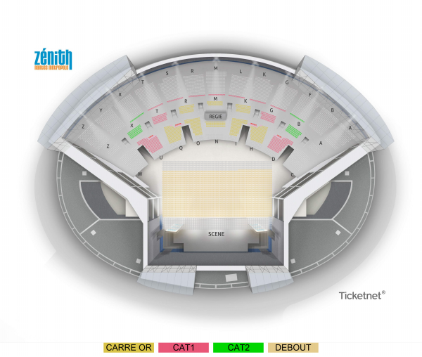 Catégorie 1, 2 et Or : places assises numérotées Fosse : placement libre debout