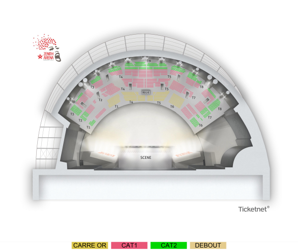 Carré or : places assises numérotées Catégorie 1 : places assises numérotées Catégorie 2 : places assises numérotées Debout : placement libre debout