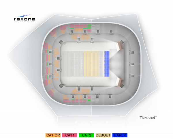 Carré Or : places assises numérotées Catégorie 1 : places assises numérotées Catégorie 2 : places assises numérotées Debout : placement libre Early Entry : placement libre debout – accès prioritaire en salle à l’ouverture des portes. Rendez-vous à 18h00. L’accès prioritaire ne sera pas garanti pour les retardataires.