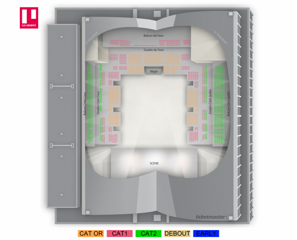 Carré or : places assises numérotées Catégorie 1 : places assises numérotées Catégorie 2 : places assises numérotées Fosse : placement libre debout Early Entrance : placement libre debout. Ouverture des portes à 18h30, accès 30 minutes avant l’ouverture des portes, priorité non garantie au-delà