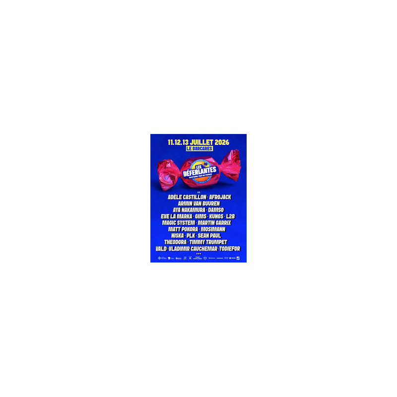 LA FRONTERA PRODUCTION PRÉSENTE : LES DEFERLANTES SUD DE FRANCE 2026 - Face à la Méditerranée, entre sable doré et montagnes catalanes, Les Déferlantes reviennent du 11 au 13 juillet 2026 pour faire vibrer les Jardins du Lydia au Barcarès à l’occasion de leur 20e édition. Trois jours de musique, de soleil et de lâcher-prise dans un décor de carte postale, entre mer turquoise et montagnes catalanes. Scènes en plein air, bars, food-courts, espaces chill, animations et surprises transforment le festival en un immense terrain de jeu à ciel ouvert. Ici, les plus grands artistes nationaux et internationaux enflamment des dizaines de milliers de festivaliers venus danser, partager et vivre un été inoubliable. Programmation : SAMEDI 11/07/2026 : GIMS TIMMY TRUMPET AFROJACK VALD x VLADIMIR CAUCHEMAR x TODIEFOR MATT POKORA MAGIC SYSTEM ADÈLE CASTILLON LUCA TESTA FOLIE'S JEY BROWNIE VLTN² WILLIAM DIMANCHE 12/07/2026 : AYA NAKAMURA THEODORA PLK NISKA KUNGS L2B CYRIL HYPATON PALOMA MORGAN NAGOYA SECTE SOUND SYSTEM LUNDI 13/07/2026 : SEAN PAUL MARTIN GARRIX DAMSO ARMIN VAN BUUREN MOSIMANN EVE LA MARKA MIKI PETIT BISCUIT ZED DANYL DAKEEZ SECTE SOUND SYSTEM